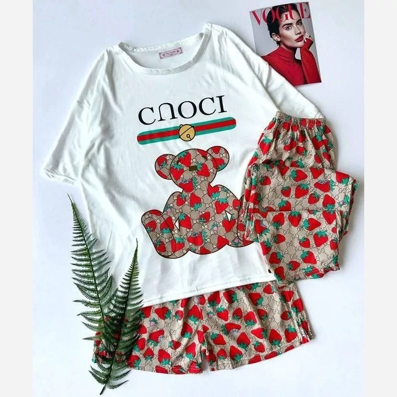 ناموجودسه تیکه راحتی دخترانه وارداتی طرح توت فرنگی گوچی
