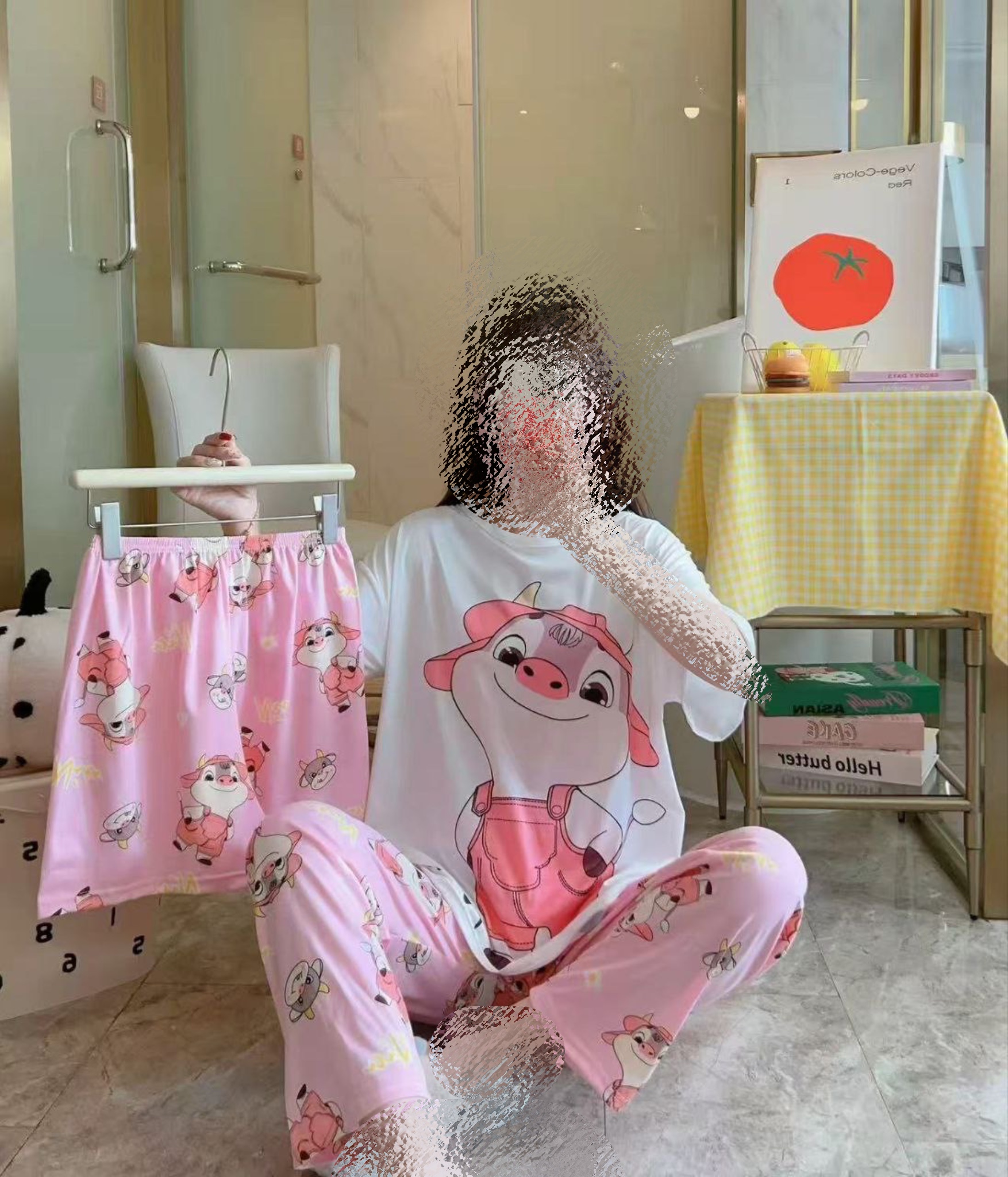 ست سه تیکه زنانه وارداتی طرح گاو و دونات