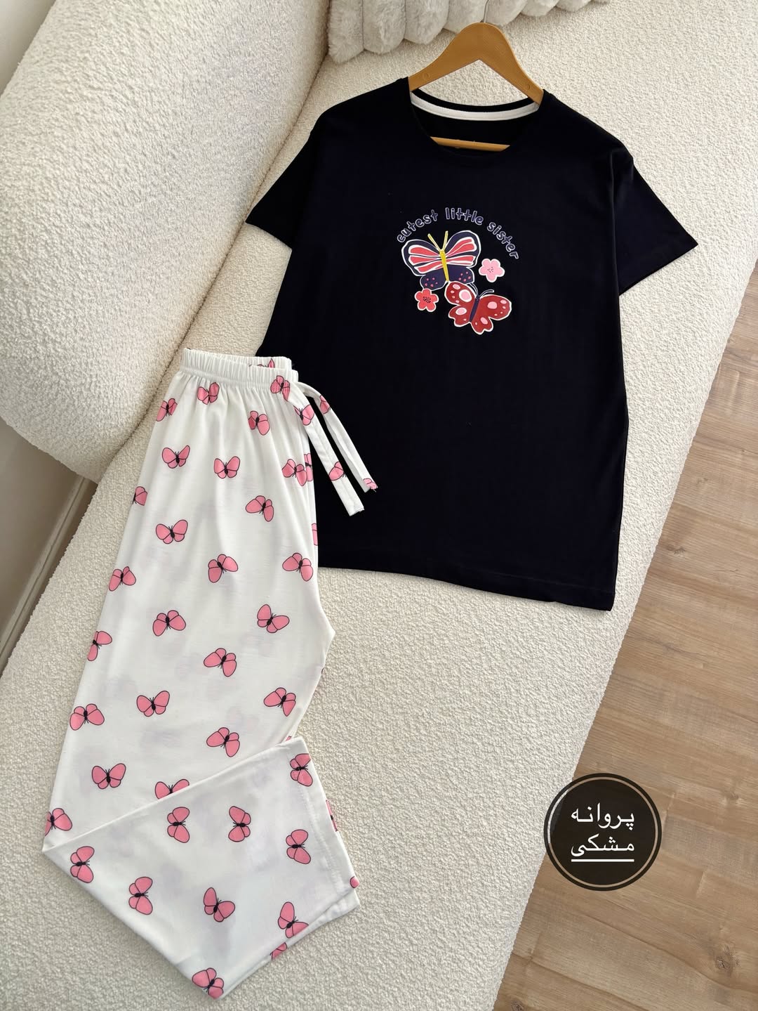 ناموجودست راحتی تیشرت و شلوار دخترانه طرح پروانه پینترستی