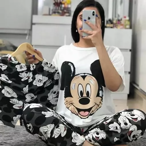 ناموجودست راحتی سه تکه وارداتی دخترانه طرح میکی موس مشکی