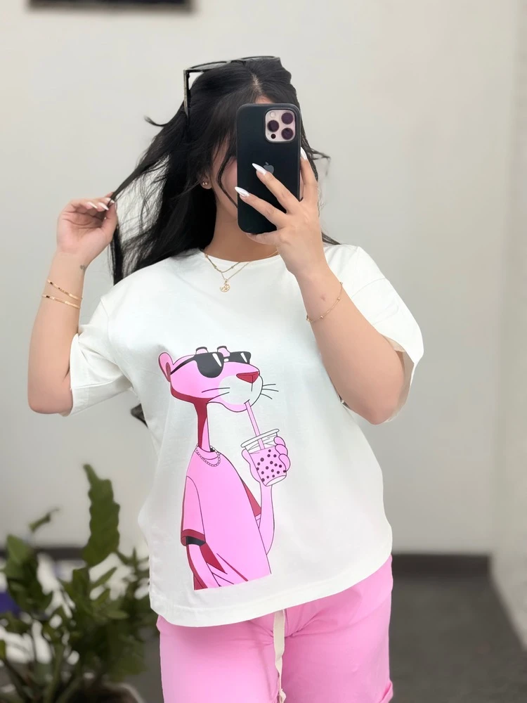 ناموجودست تیشرت و شلوارک پلنگ صورتی کد 151