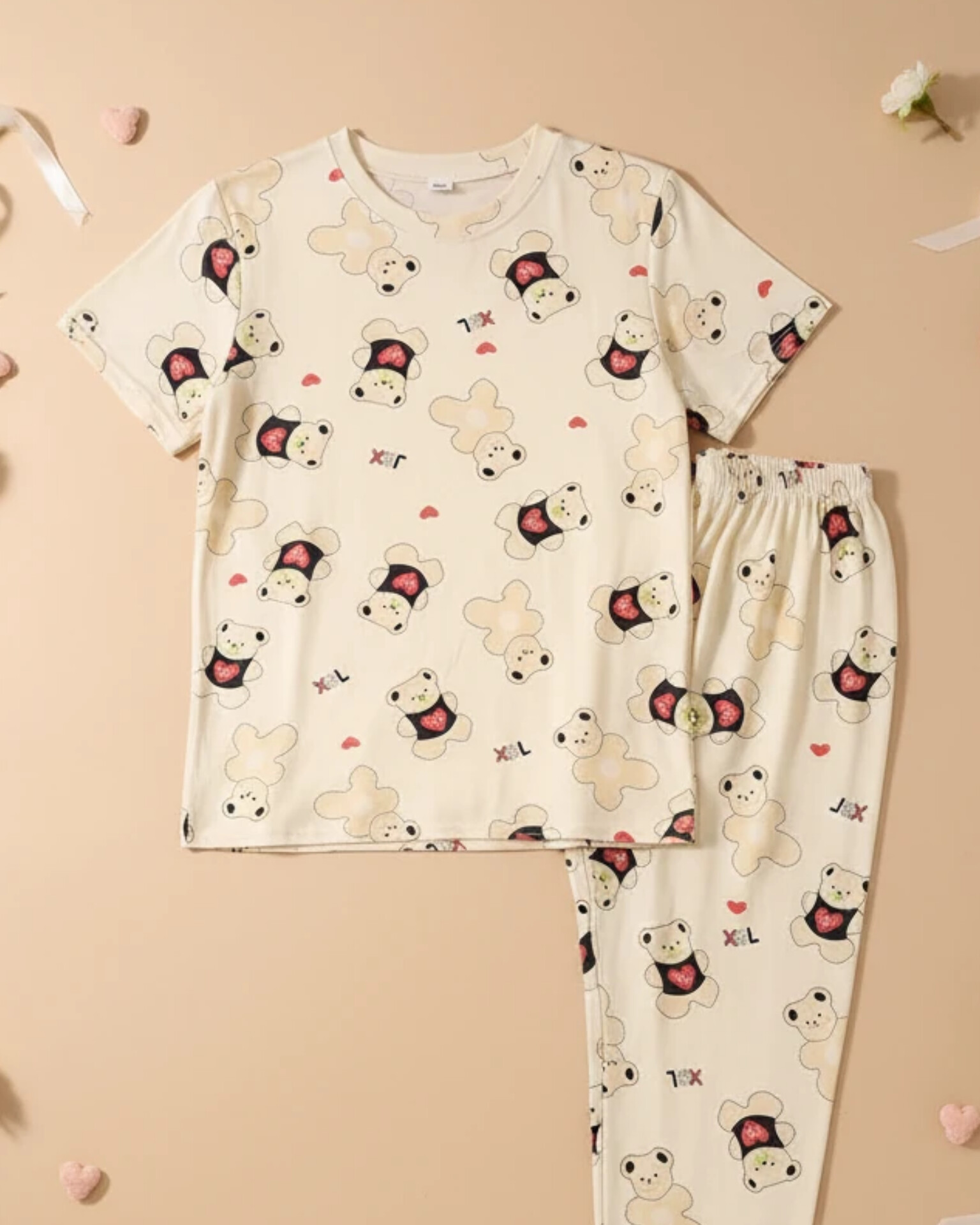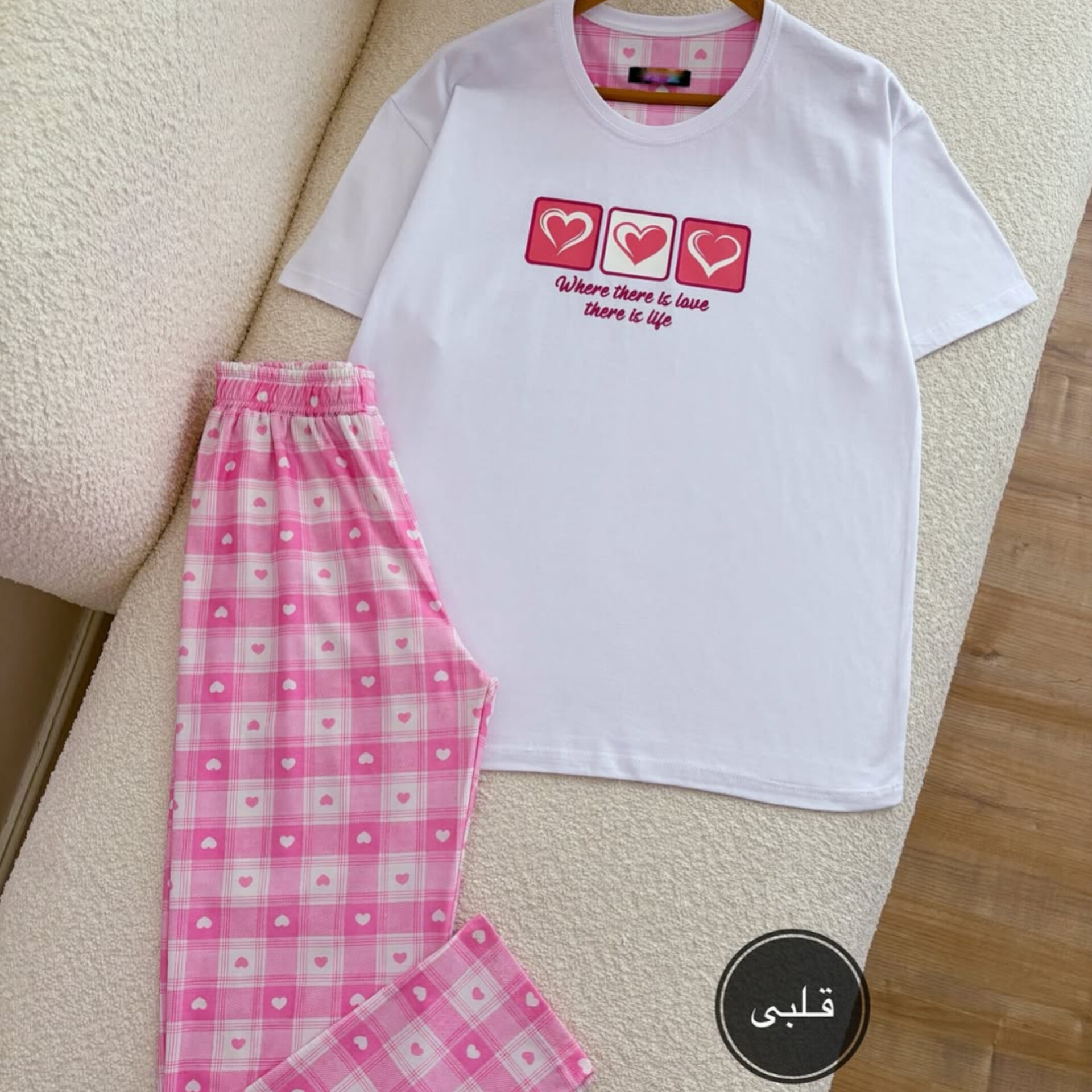 ناموجودست تیشرت و شلوار پنبه طرح قلبی