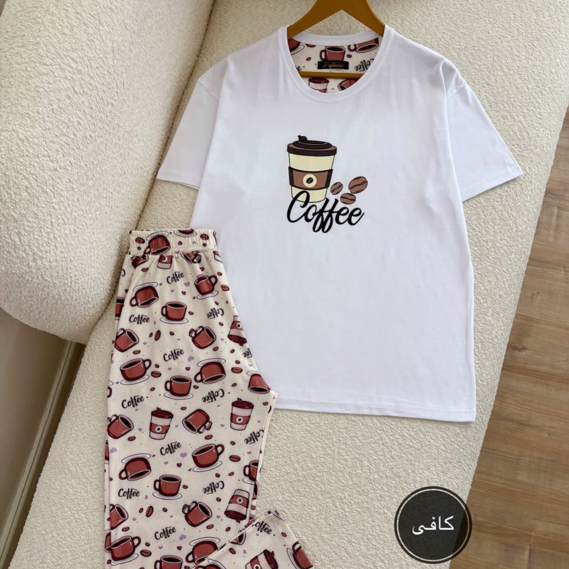 ناموجودست تیشرت و شلوار پنبه طرح کافی