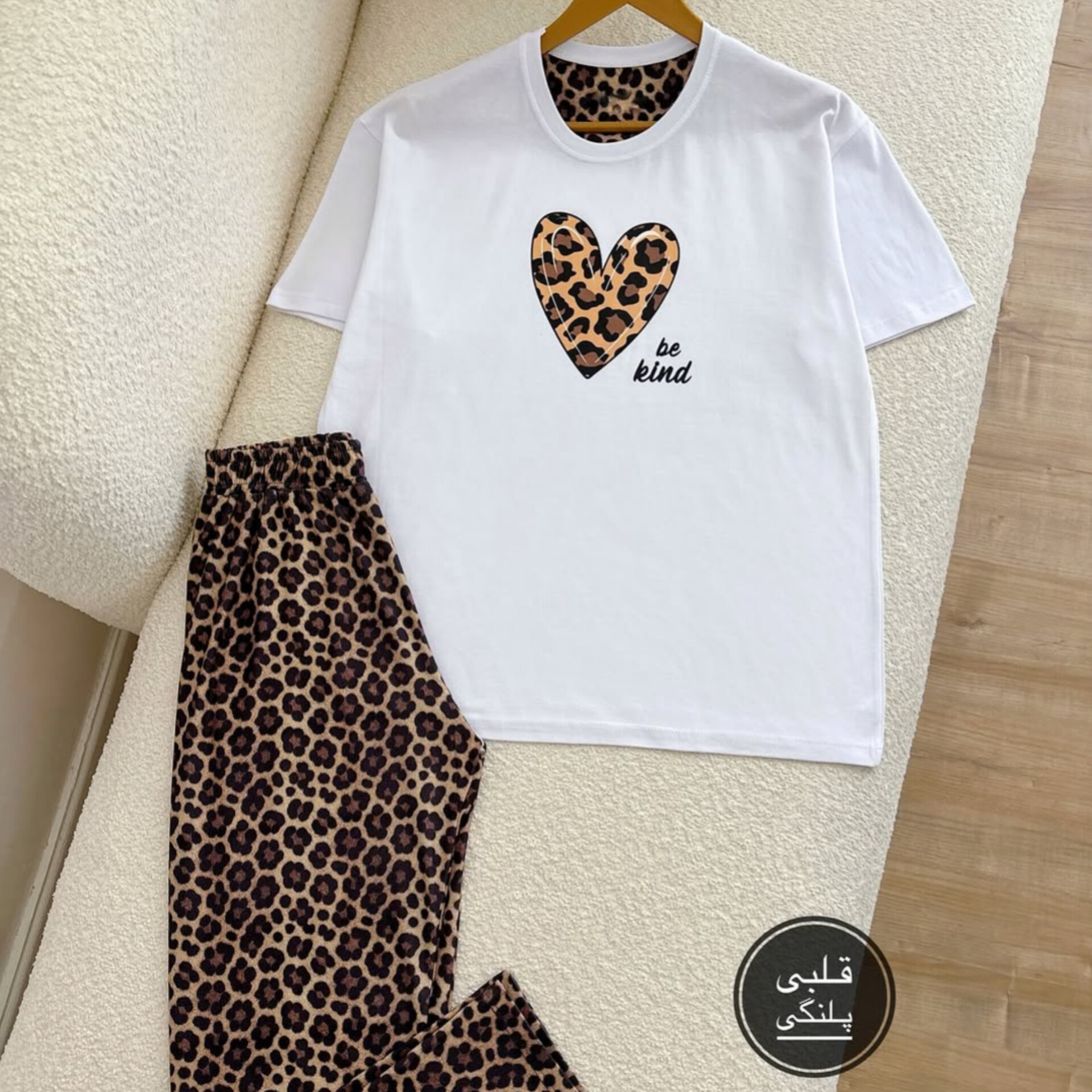 ناموجودست تیشرت و شلوار پنبه طرح قلب پلنگی