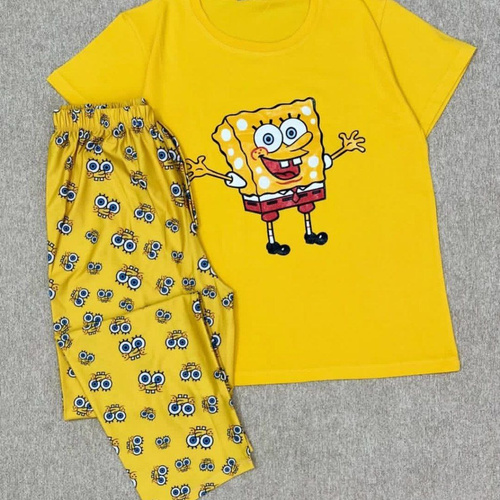 ناموجودست تیشرت و شلوار دخترانه طرح باب اسفنجی فری سایز