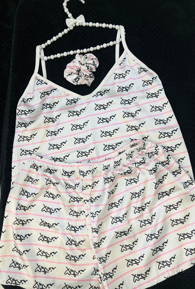 ست تاپ و شلوارک ساتن زنانه به همراه اسکرانچی – لطیف، شیک و فریسایز