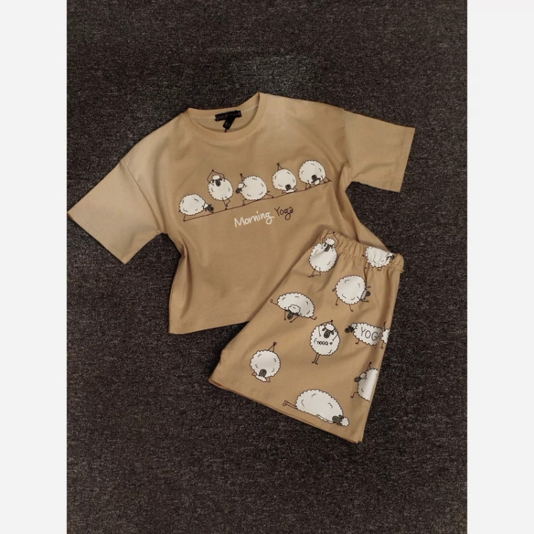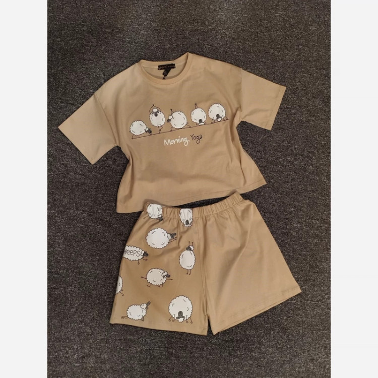 ست کراپ و شلوارک طرح ببعی یوگا کار پنبه