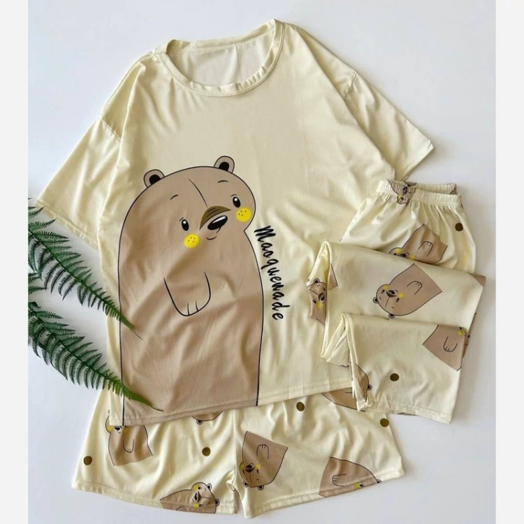 این ست راحتی فانتزی شامل تیشرت آستینکوتاه، شلوارک و شلوار بلند با طرح بامزه فک هست. جنس پارچه نرم، لطیف و بسیار خنک، مناسب فصل تابستان و استفاده روزمره داخل منزل. جزئیات محصول: ✅ شامل سه تکه: تیشرت + شلوارک + شلوار بلند ✅ پارچه وارداتی با کیفیت بالا ✅ چاپ فانتزی و جذاب مناسب دختران و خانمهای جوان ✅ سایزبندی: فری سایز مناسب 36 تا 44 ✅ رنگبندی: فقط تصویر موجود ✅ قابل شستشو با ماشین لباسشویی و آب سرد