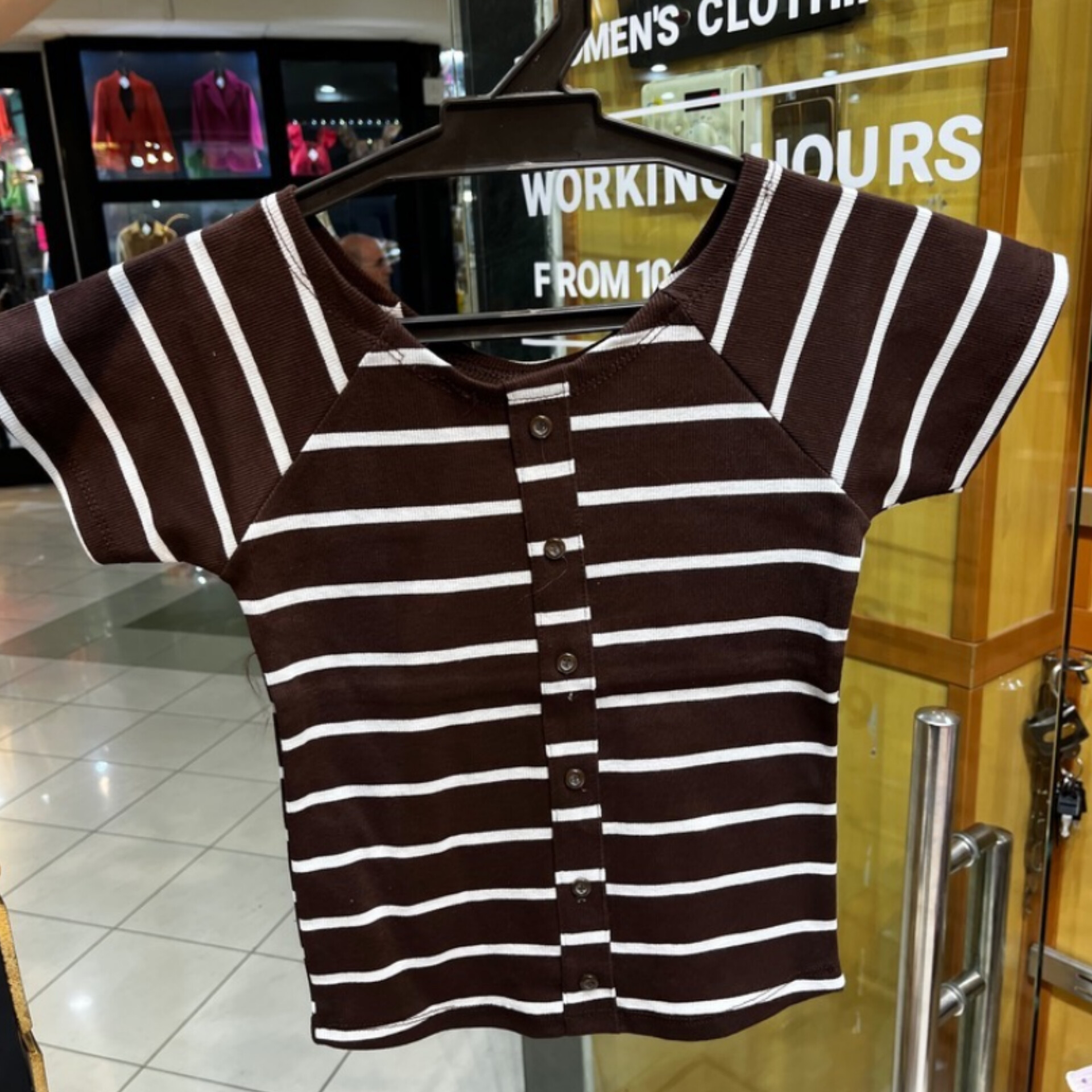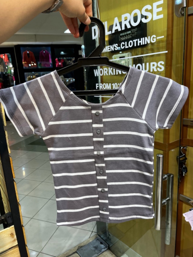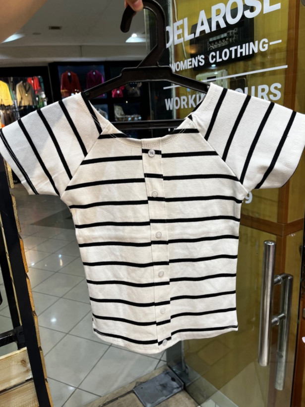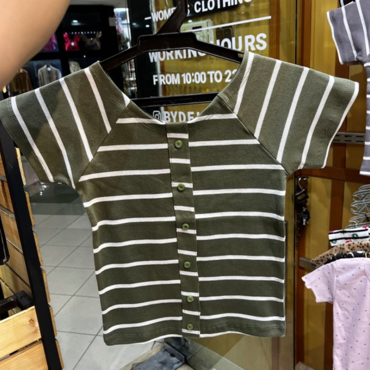 کراپ نیمه آستین راه راه جلو دکمه نما پنبه