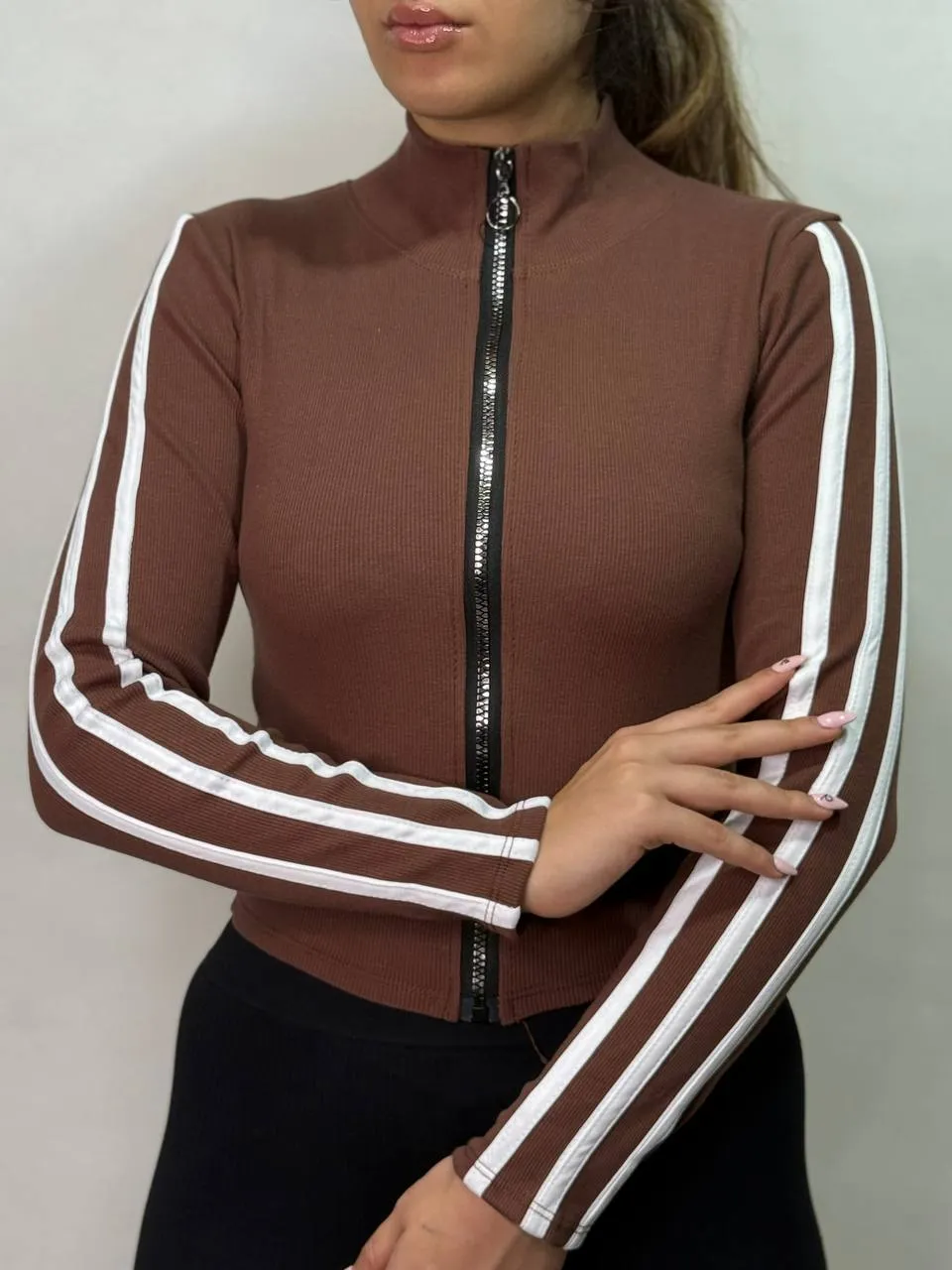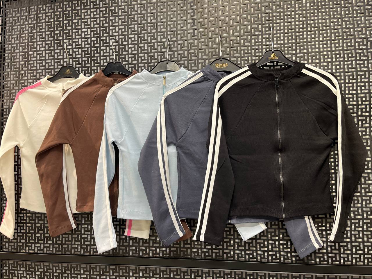 کراپ آستین دار جلو زیپ دار بغل سه خط آدیداس پنبه ای