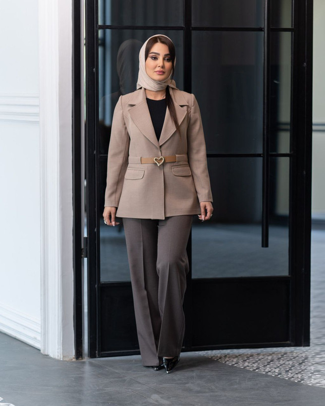 فاصله مناسب یقه، تنوع رنگی شامل کرم، سورمهای، طوسی و مشکی، و کمربند ظریف باعث شده این کت به راحتی با انواع شلوار، دامن یا لباس رسمی و روزمره ست شود. طراحی کمربنددار آن نهتنها استایل شما را برجستهتر میکند، بلکه میتواند انحنای طبیعی بدن را زیباتر نشان دهد.