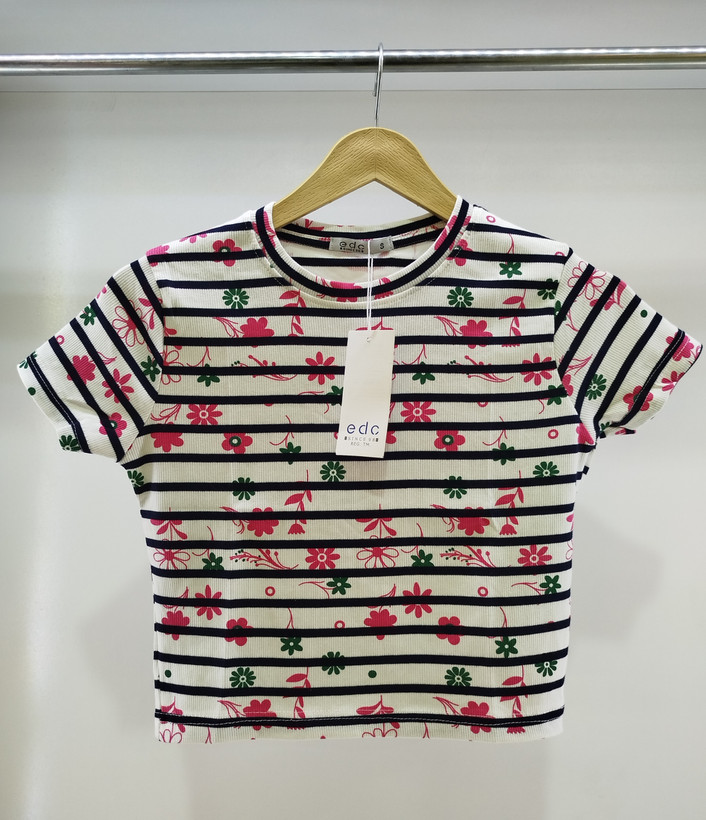 کراپ نیمه آستین وارداتی برند EDC طرح گلدار – انتخابی بینظیر برای استایل روزمره و خاص