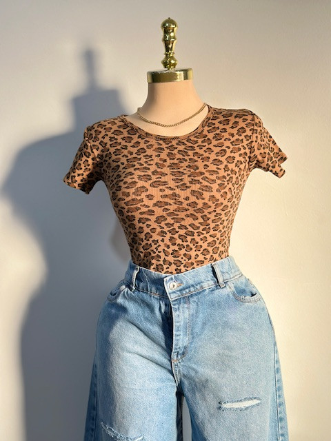 ناموجودکراپ نیمه آستین پلنگی یقه گرد پنبه کبریتی
